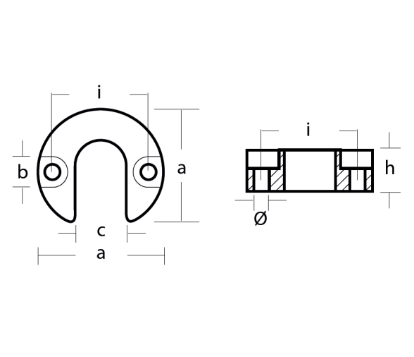Ánodo de sacrificio para barco tipo collar. Específico para trim. Preserva de la corrosión producida por la corriente galvánica de cualquier parte de la embarcación sumergida o expuesta al agua.
