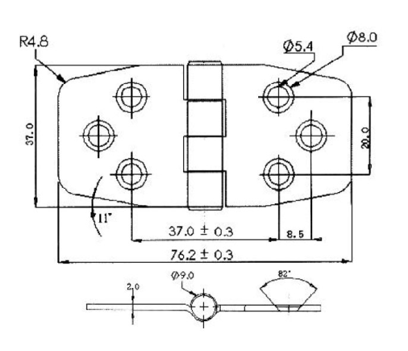 Bisagra INOX de la marca Marine Town. Bisagra INOX de fricción, con medida de 40x76,2mm, 2mm de grosor y 2 orificios para atornillar en cada lado de la medida M4.