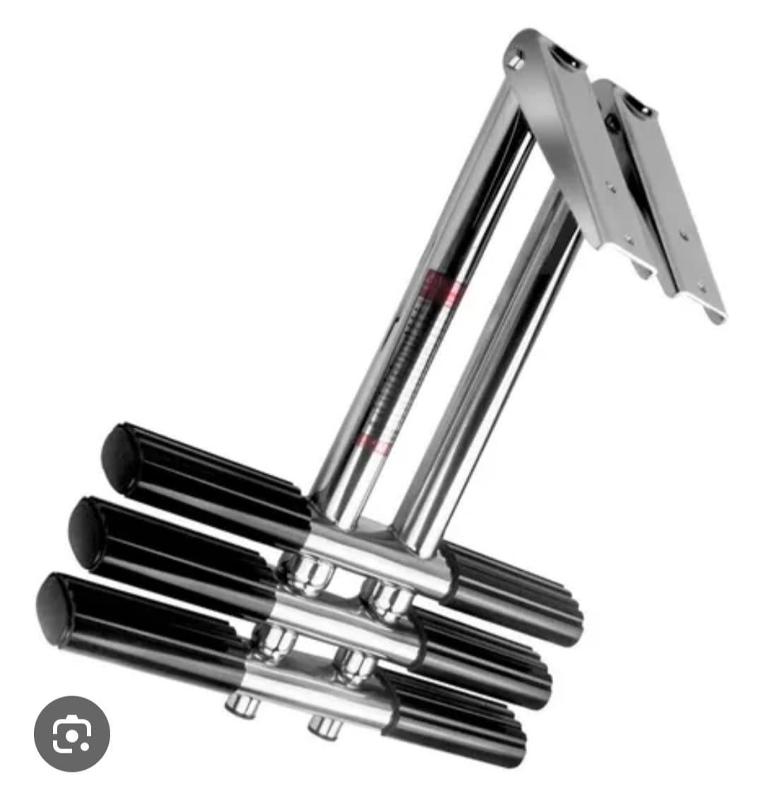 Dispone de tres peldaños telescópicos que se pliegan de manera compacta cuando la escalera no está en uso, optimizando el espacio en la plataforma o el piso del barco. Los peldaños incorporan cubiertas de plástico negro antideslizantes, que proporcionan un agarre firme y seguro durante el embarque, incluso con superficies mojadas.