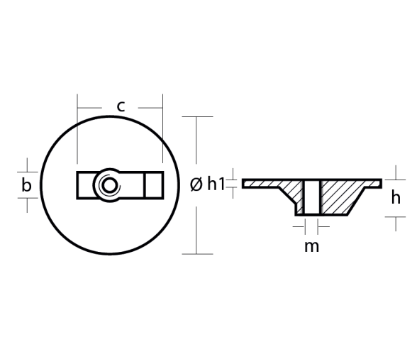 • COD  00820  b  21(mm)   c  58(mm)  h  24(mm)  h1 5(mm)  Ø  92(mm)  0.34Kg